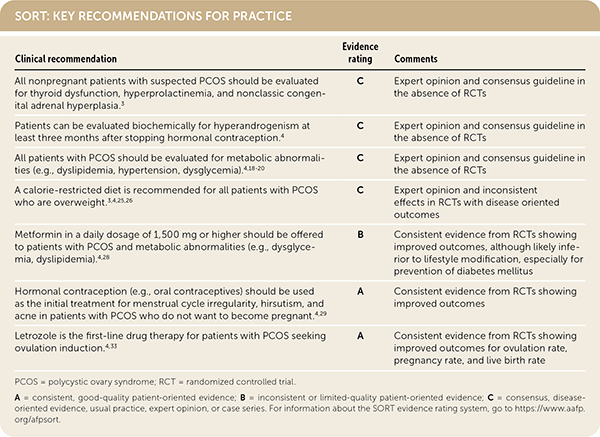 | All nonpregnant patients with suspected PCOS should be evaluated for thyroid dysfunction, hyperprolactinemia, and nonclassic congenital adrenal hyperplasia.3 |
