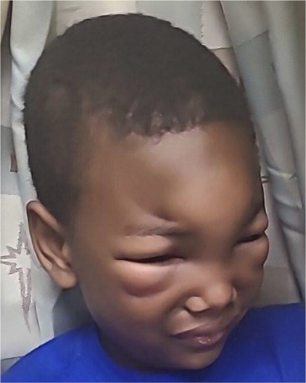 A 6-year-old boy presented after waking up with swelling of his forehead and bilateral eyelids. He had not experienced recent falls, trauma, or travel. The patient had not been outdoors in the previous 24 hours, but it was unclear whether he had any insect bites. He had a history of nonverbal autism.