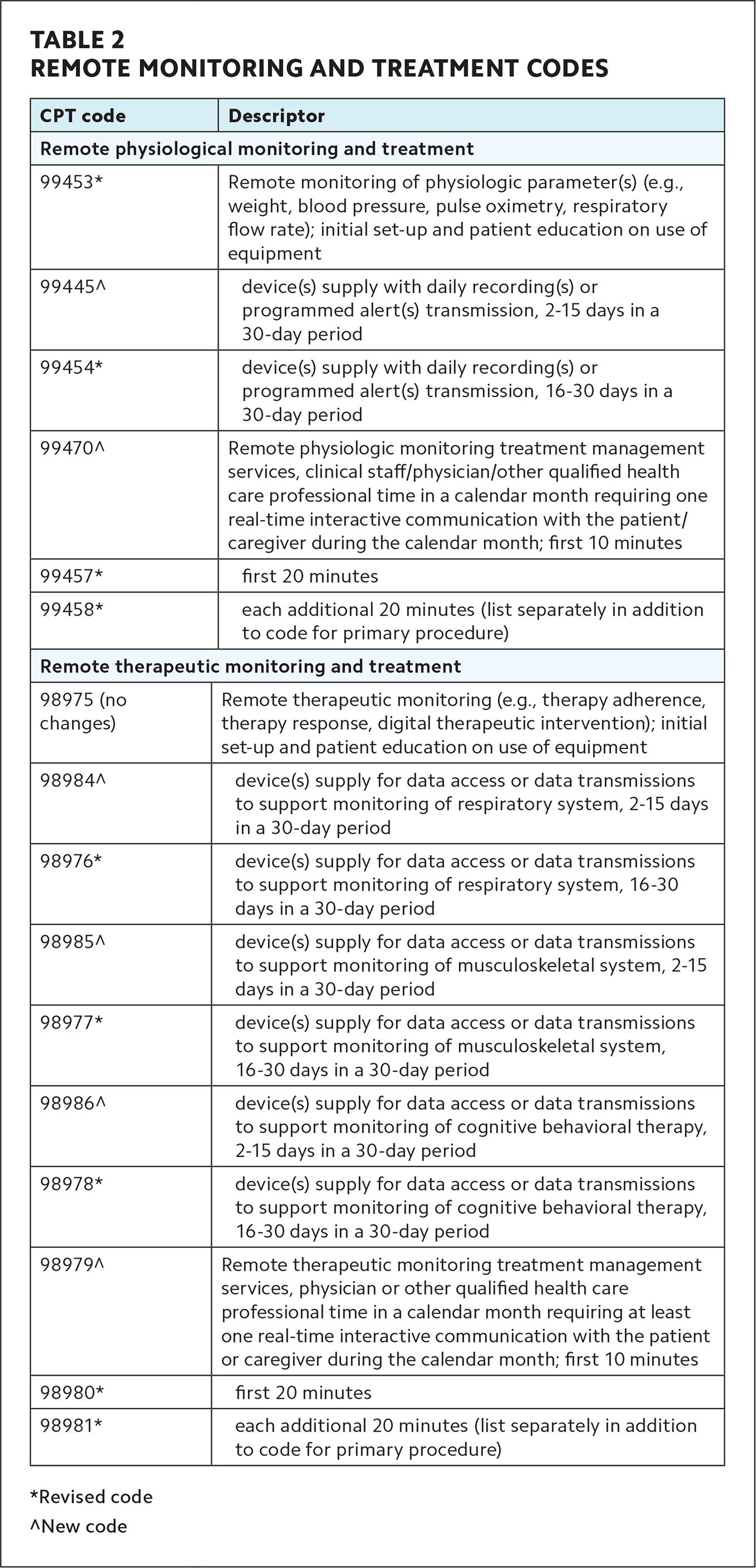 CPT added new codes that expand payment opportunities for remote monitoring and immunization counseling.